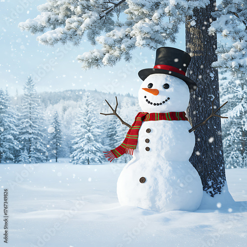 Festive Snowman in a Winter Wonderland A Joyful Christmas Scene Amidst Snowy Trees