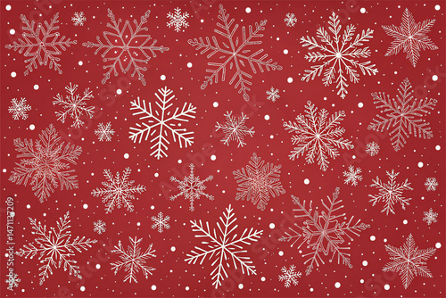Festive Winter Snowflakes on Red Background Pattern