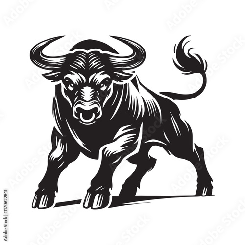Fierce angry ox silhouette for innovative artistic designs - Angry ox black vector