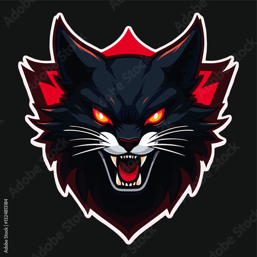 Fierce Black Cat Mascot with Red Eyes on Shield Logo