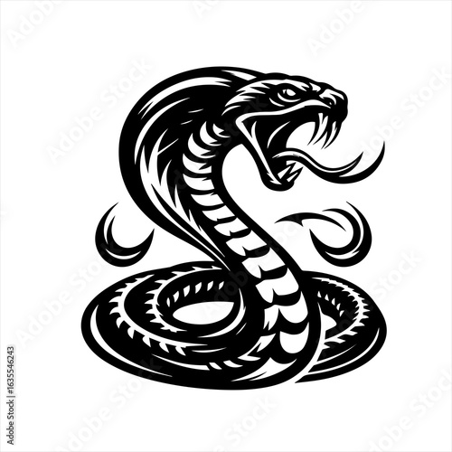 Fierce black cobra snake illustration with open mouth and fangs