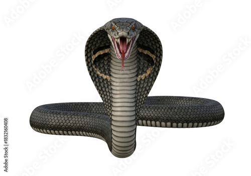 Fierce cobra snake isolated on transparent background for wildlife and danger themes
