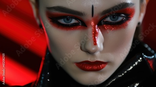Fierce Fashionista Strutting on Runway Under Shamrock Green Lights. Generative AI.