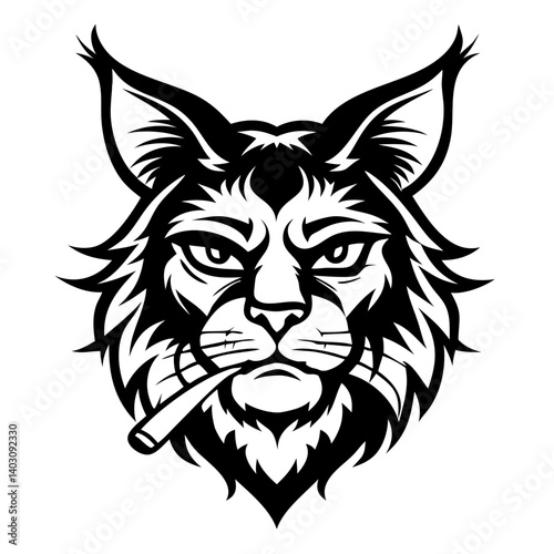 Fierce Lynx Illustration with Cigarette for Tattoo and Graphic Design Use