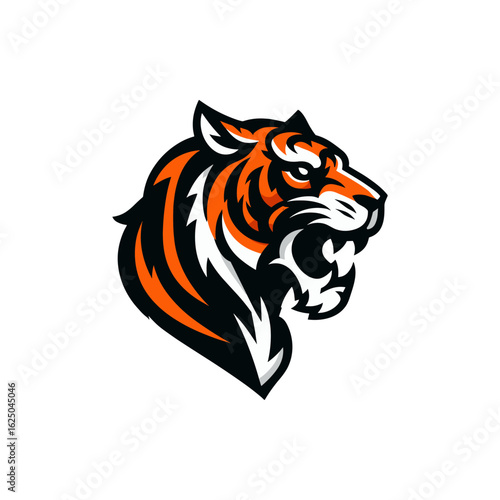 Fierce tiger head illustration showcasing vibrant orange and black stripes, ideal for branding