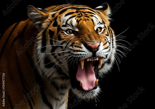 Fierce Tiger Portrait Against Black Background. Generative Ai