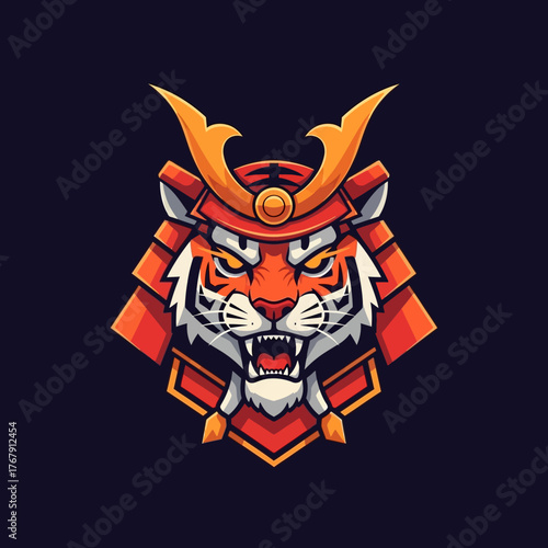 Fierce Tiger Samurai Head Mascot Logo Illustration.