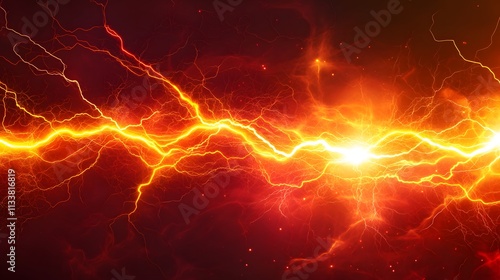 Fiery Electric Bolt Streaking Across Dark Red Background