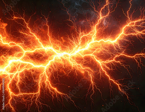 Fiery Lightning Storm Intense Orange Electrical Discharge in Dramatic Weather