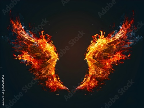 Fiery Phoenix Wings with Vibrant Flames against Dark Backdrop