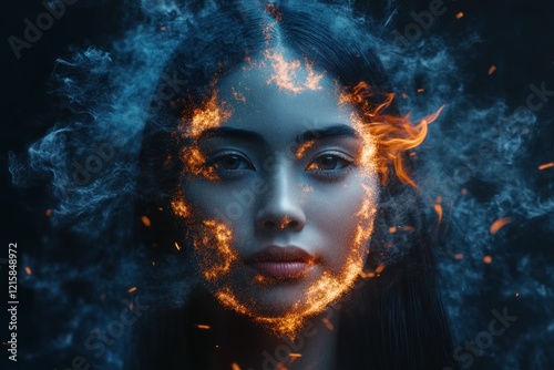 Fiery Transformation: A Woman's Face Embraces the Flames