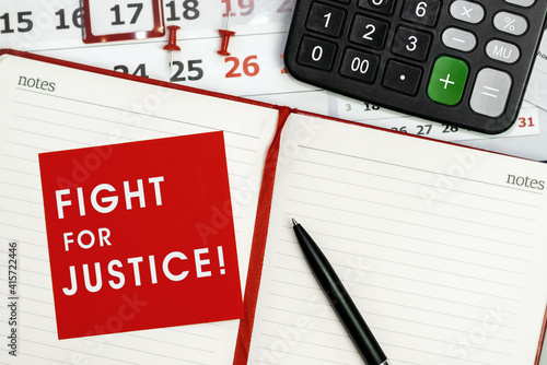 Fight for Justice - concept of text on sticky note