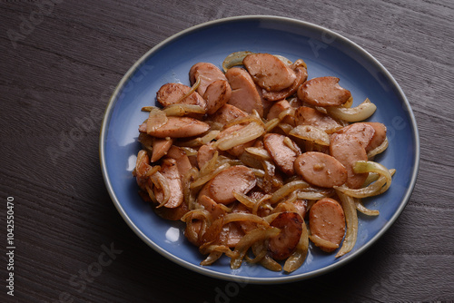 魚肉ソーセージと玉ねぎのマヨネーズ醤油炒め