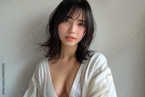 白トップスで魅せる透明感あふれる女性