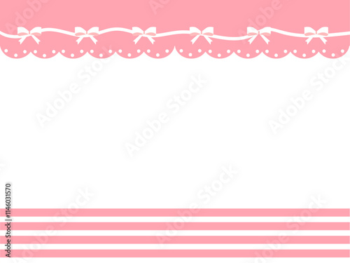 リボンとボーダーのピンク色のラブリーなフレーム