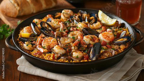 海鮮たっぷりのパエリアが映える伝統的なスペイン料理の一皿