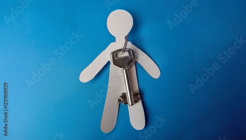 사회 복지 시스템을 상징하는 열쇠들이 그려진 종이인형