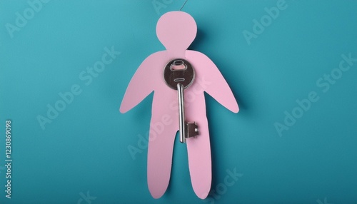 사회 복지 시스템을 상징하는 열쇠들이 그려진 종이인형
