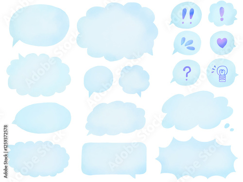水彩の吹き出し:水色の手描きフキダシのセット