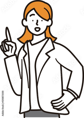 笑顔で指差ししているビジネスウーマンのシンプルな上半身のイラスト素材
