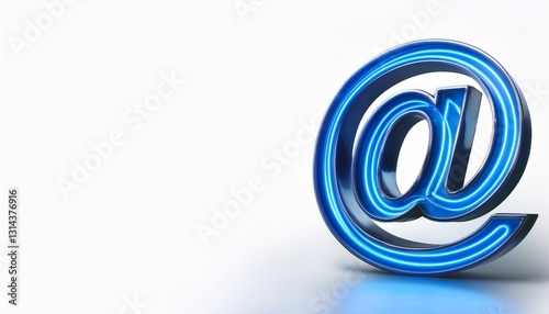블루 네온 스타일의 '@' 기호가 빛나는 배경화면
