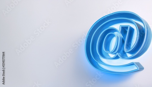 블루 네온 스타일의 '@' 기호가 빛나는 배경화면