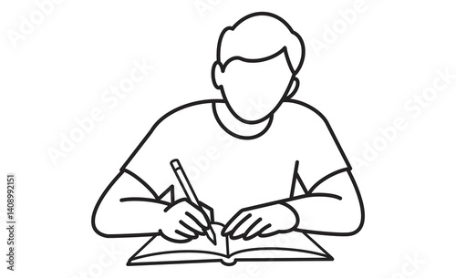 ノートに文字を書く男性の線画イラスト