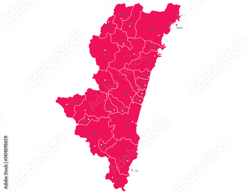 宮崎県 地図 マゼンタ 斑点 イラスト