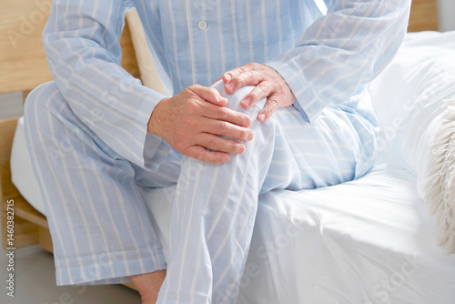 膝が痛いパジャマを着た中年の男性 顔無し
