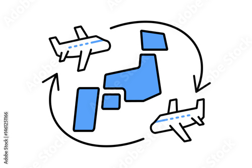 日本全国を飛び回る飛行機をイメージしたイラスト