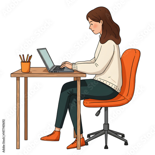 温かい光差し込む部屋で女性が集中して作業中 穏やかな雰囲気のイラスト