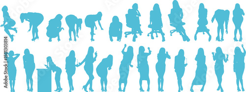 オフィスで仕事をするビジネスウーマンのシルエットイラストセット
