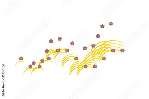 赤の梅の花と金の波型和風装飾線 グラフィック素材