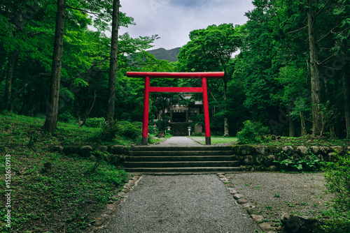 箱根の緑に映える公時神社の美しい鳥居と参道 神奈川県箱根町