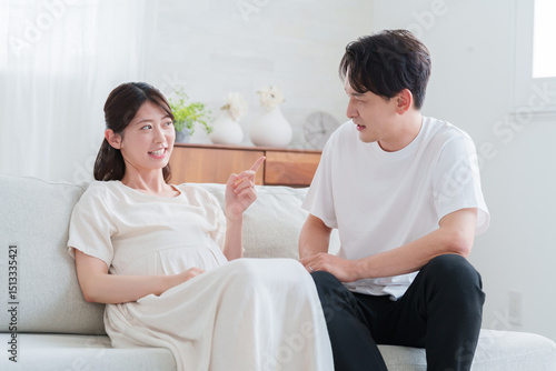 夫婦喧嘩する妊婦の妻と夫