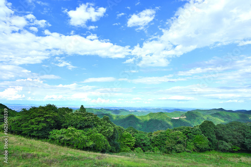 夏の秩父高原からみたどこまでも広がる青空と自然