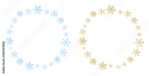 ゴールドとブルーの雪の結晶のフレームイラスト 背景イラスト ベクター素材