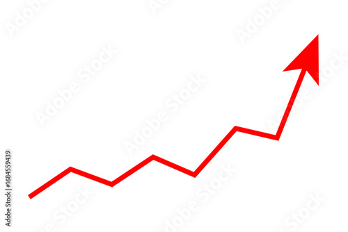 右肩上がりの折れ線グラフ - 急激な右肩上がりの赤い矢印で、売り上げ急増の線グラフのイメージ