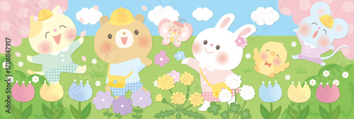 春を喜ぶ笑顔の動物たち_保育園 幼稚園