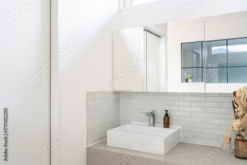 新築の洗面所,サニタリー,造作洗面台,三面鏡