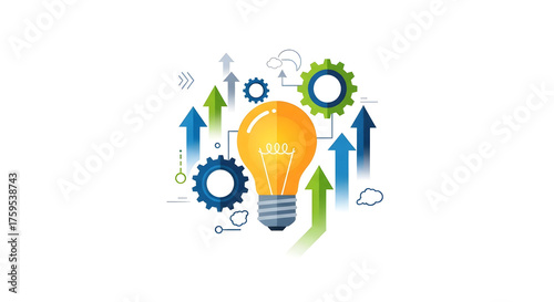 イノベーションとアイデア創出:フラットデザインのビジネスひらめきアイコン