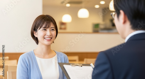レストラン・飲食店の面接を受ける主婦の女性