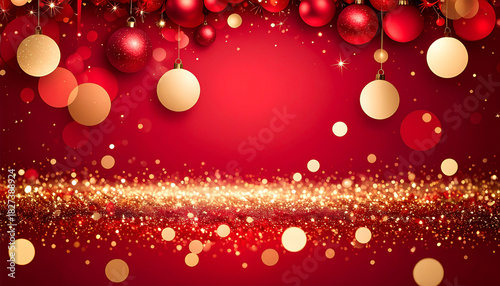 キラキラと輝く赤とゴールドのお祝い背景 真ん中は文字スペース