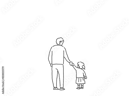 子供(小さい女の子)と手を繋ぐ男性(父親)