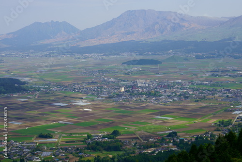 阿蘇外輪山の大観峰から見た阿蘇市内と内牧温泉街