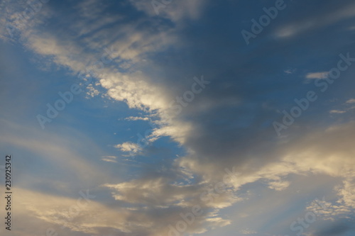 黄金色に輝く神々しい幻想的な夕焼け空に映える入道雲と地平線