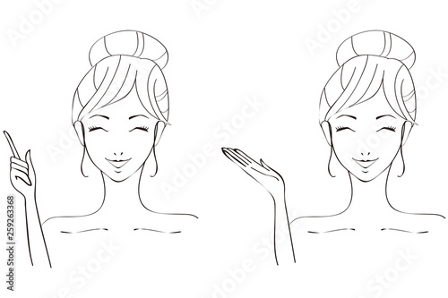 美容 女性 案内と紹介 黒い線画