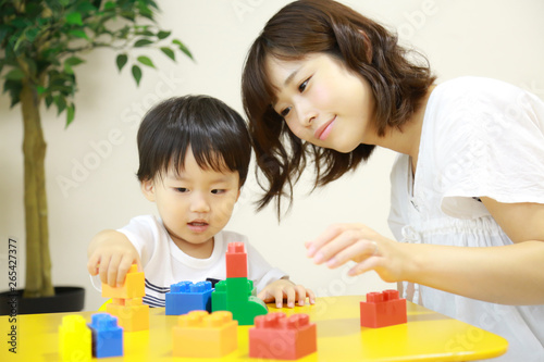 ブロックで遊ぶ親子