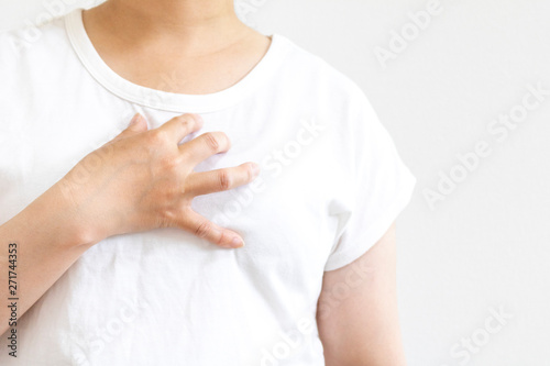 自分の胸を押さえて苦しむ女性