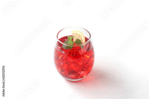 氷を入れた アイスティー 紅茶 赤い飲み物 グラス 白背景